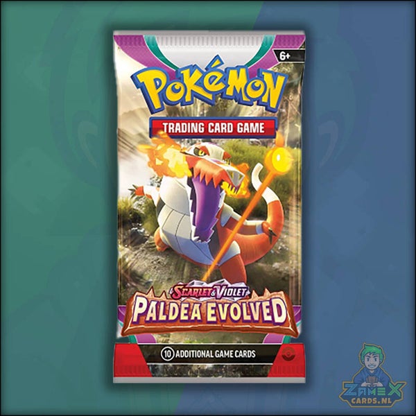 - Elk Paldea Evolved Boosterpack bevat 10 kaarten