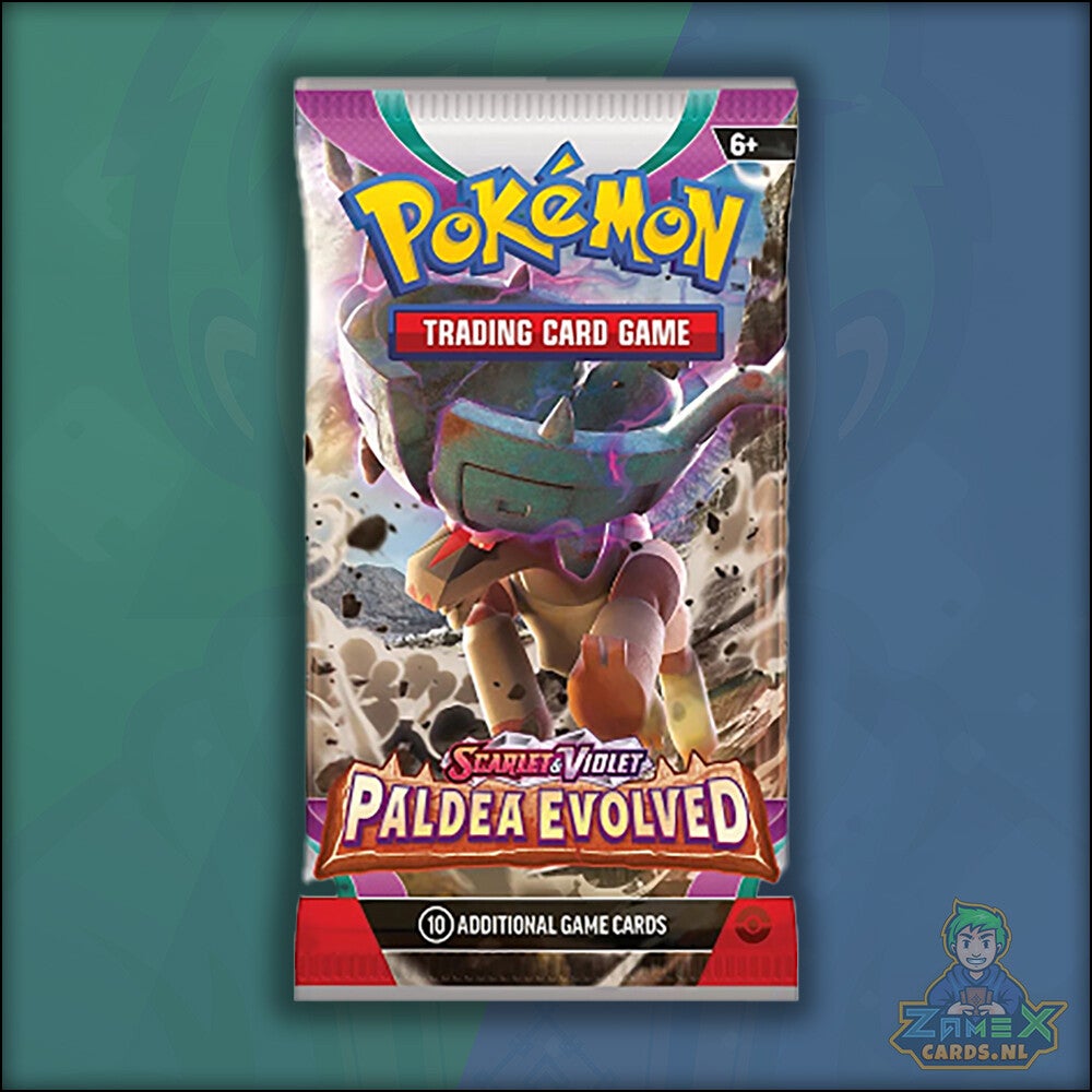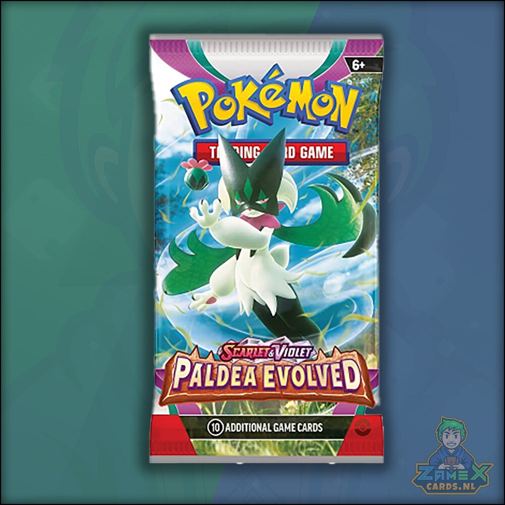 - Elk Paldea Evolved Boosterpack bevat 10 kaarten