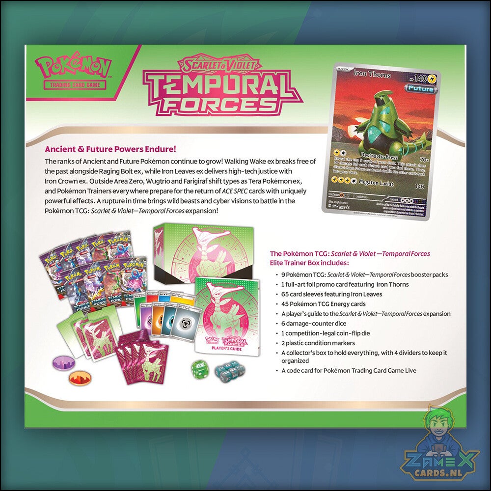 De POK TCG SV05 Temporal Forces Elite Trainer Box bevat: